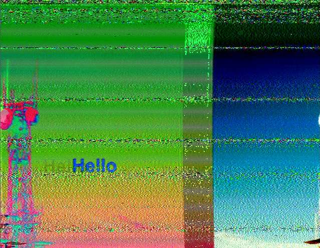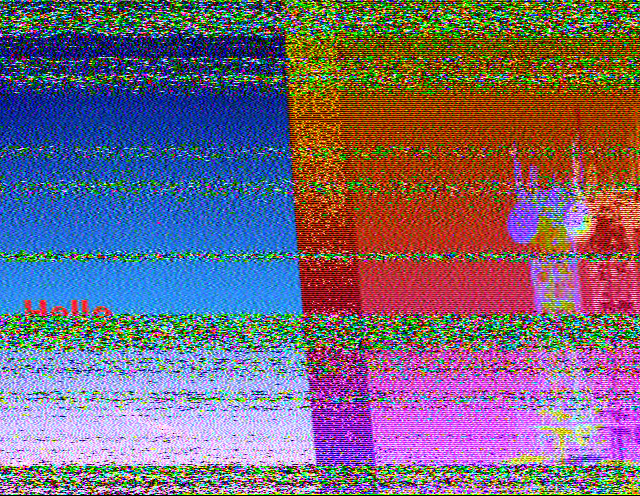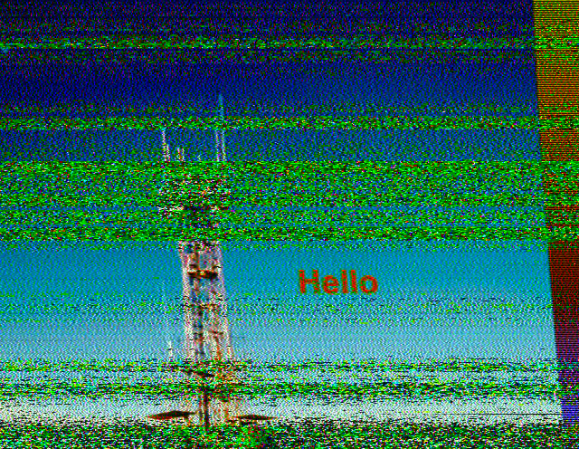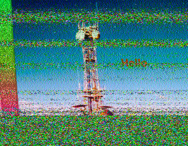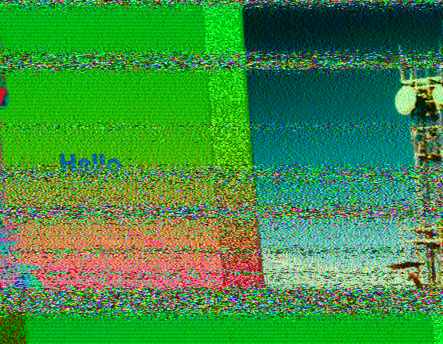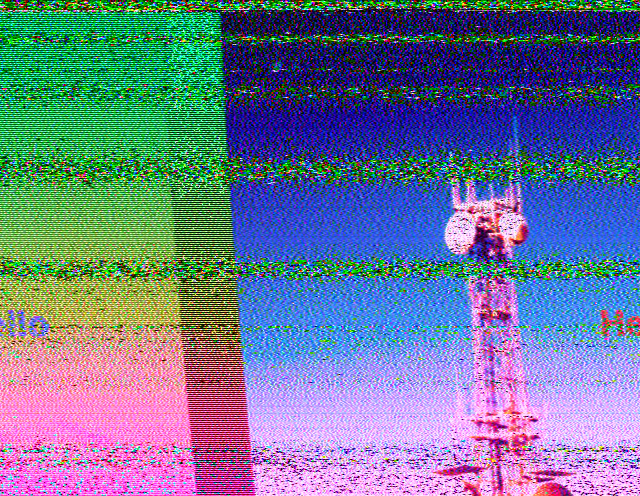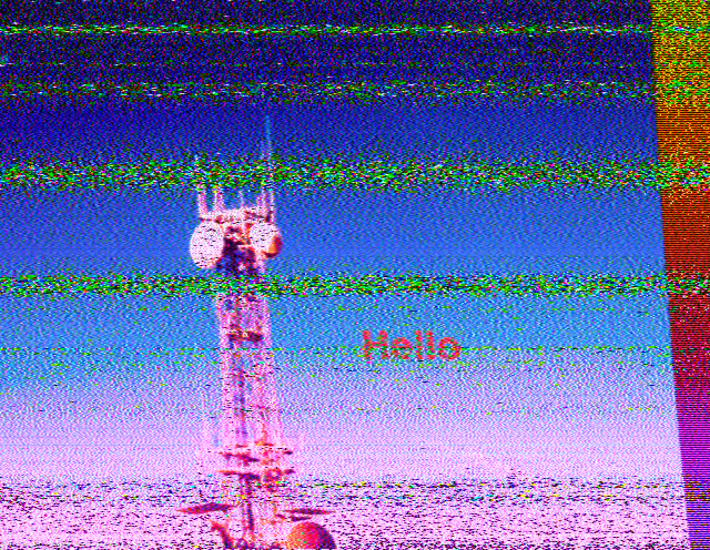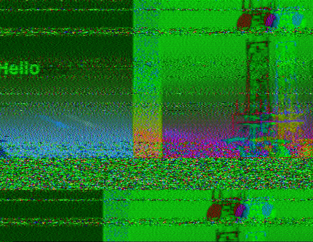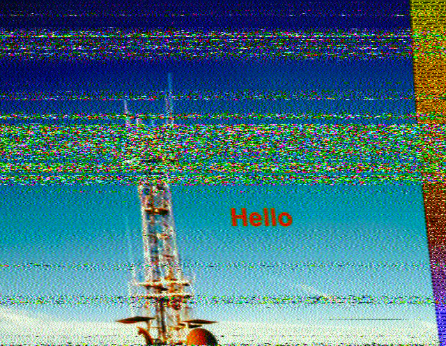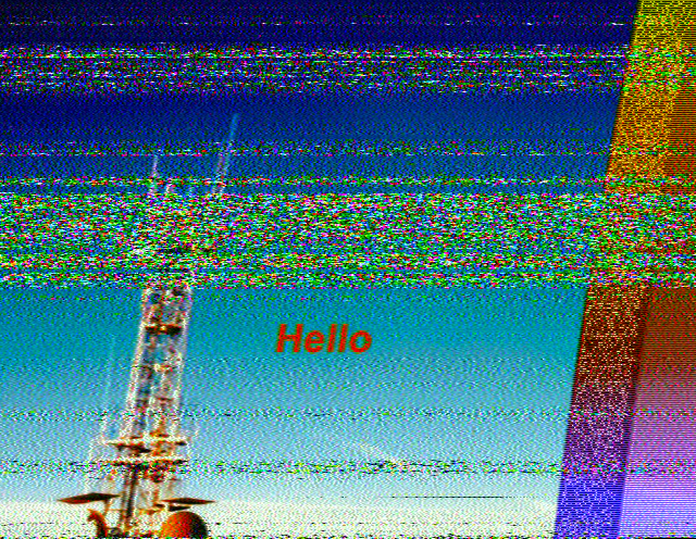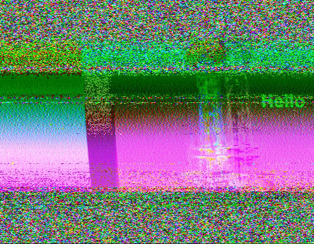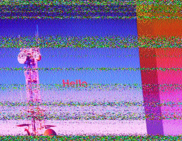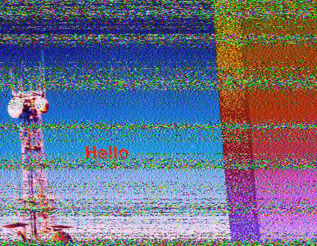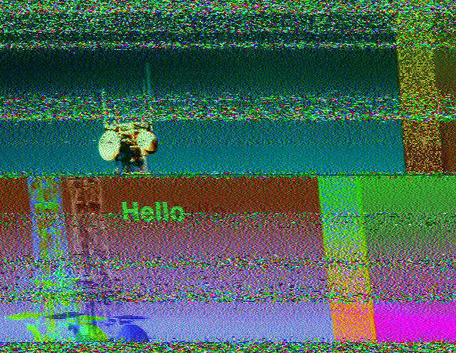 'The Hello Postcards' brings together all the versions of the Hello postcard received by ground stations across Europe, from Denmark to Russia. These are images that have travelled through space, had a personal encounter with a satellite and been returned to Earth completely transformed.